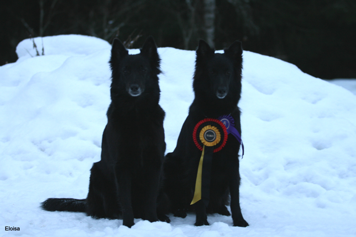 Miinalle näyttelystä H. Ansalle Agilityn ja TOKOn rotumestaruuskisoissa hopeaa! Boltille TOKOn ALO-luokan rotumestaruus pistein 196/200! Ruutille TOKOn ALO-luokan 1-tulos pistein 178! Nomille TOKOn rotumestaruuskisojen 3.sija 1-tuloksella 176p. ja TK2-titteli! Ällille JK1 pistein 290, maasto 200/200 ja tottis 90/100! Lämpimät onnittelut Sannamari ja Miina, Tanja, Ansa ja Bolt, Sari ja Ruuti, Noora ja Nomi sekä Marju, Kari ja Älli! |